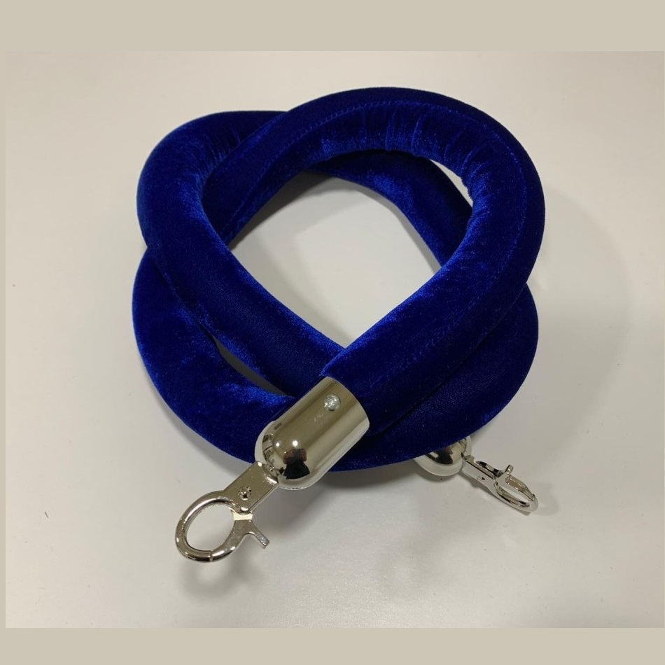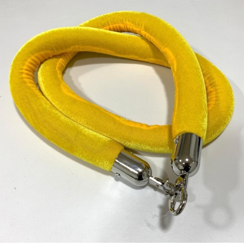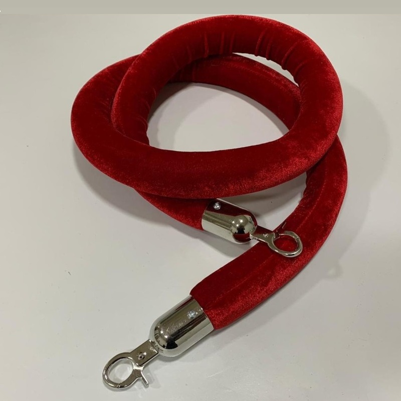 Ganci a Scatto Professionali: Dotato alle estremità di terminali metallici con chiusura a molla di alta qualità, disponibili nelle finiture Oro Lucido o Argento Cromato per abbinarsi perfettamente alle basi delle colonnine.