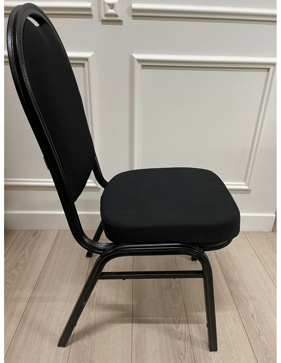 Comoda e robusta, questa sedia ha il telaio nero in ferro rinforzato da 25x25x1,2 mm con saldature rinforzate, tubolare lavorato e verniciato su tre mani con pittura ad olio ad alta densità (ANTIGRAFFIO).